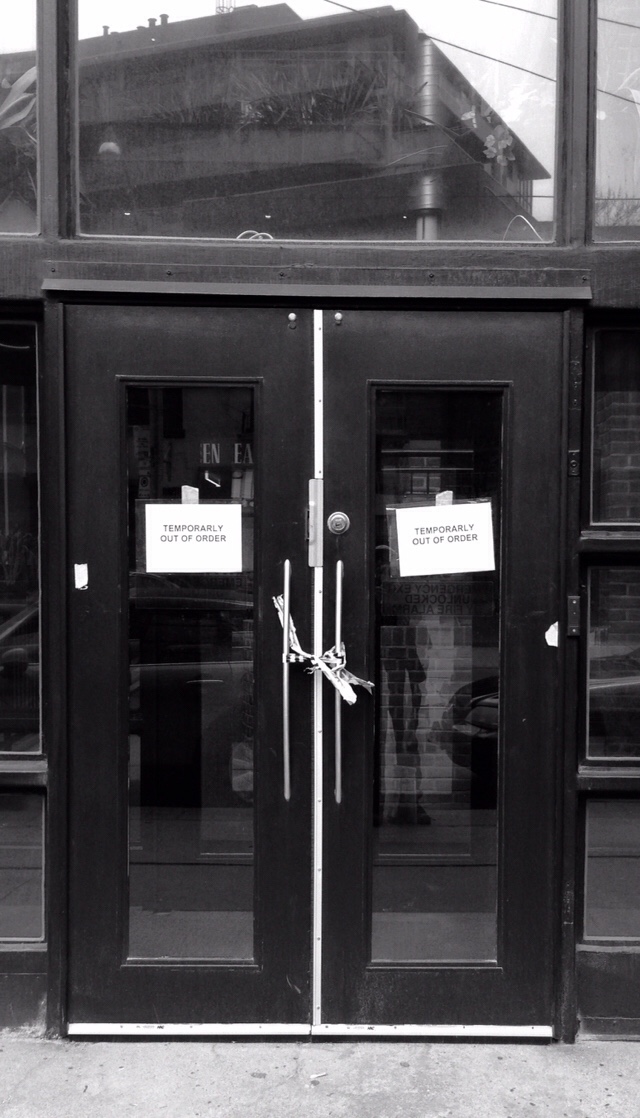 Abandoned storefronts.